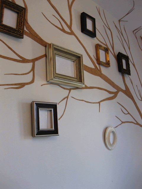Melissa öntapadós parafa burkoló lapból és néhány régi képkeretből készítette el ezt a dekoratív óriási méretű családfát, az előszobájukba.