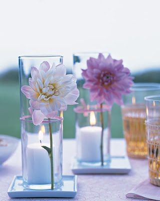 Egy salátástál néhány úszómécses és bármilyen virágszirom csodás hatást kelt. Nem kell orchideai, hogy gyönyörű legyen a teríték. Ha vidéki hatásra vágysz, akkor minden teríték mellé tegyél egy kis tálkába egy fej büdöskét vagy egy fej körömvirágot. Friss, vidékies és még amiatt sem kell aggódnod, hogy elhervad a virág a nagy melegben.